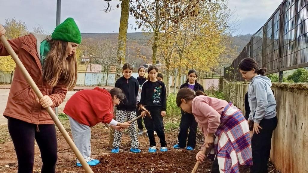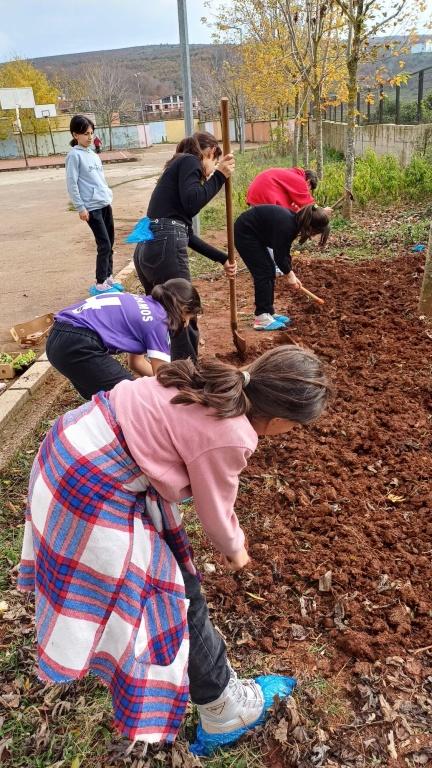 "Üretiyoruz ve Öğreniyoruz" etkinliği ile öğrencilerimiz öğretmenleriyle birlikte okulumuzda bostan ekimi için ayrılan alanı çapaladılar ve kazdılar. Ardından fidelerini hep birlikte toprağa ektiler. Bu etkinliğimizde öğrencilerimize sorumluluk duygusu, yardımlaşma, paylaşma, doğa sevgisi ve arkadaşları ile birlikte başarma duygusu ve özgüveni geliştirmeyi amaçlamaktayız.